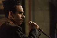 Back in the world of the living, Pablo stands guard over Ash's body in the cellar, until the sound of something moving around in the store upstairs catches his attention. He looks up to find the contents of the body bag has been removed, and heads upstairs to investigate.