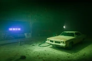 Back in the Deadlands, Ash and the others attempt to make their way back to the cellar, though Williams soon learns just how complicated the "door logic" of this strange world is. Finding themselves back on the main street through Elk Grove, Dalton volunteers to create a distraction for Ash and the others to drive to the hardware store in the Deadlands version of the Oldsmobile. Before Ash can start the car's engine, demonic hands reach up from the pavement and drag the Delta into the ground, only for the car to pop back up and roar to life as it makes a beeline for the shadowy creature. Plowing through the monster as if it were nothing, the car comes to a screeching halt as they race into the hardware store and into the cellar. Ash is initially angered at the lack of "open rift" waiting for them, unaware of his friend's struggle in the real world.
