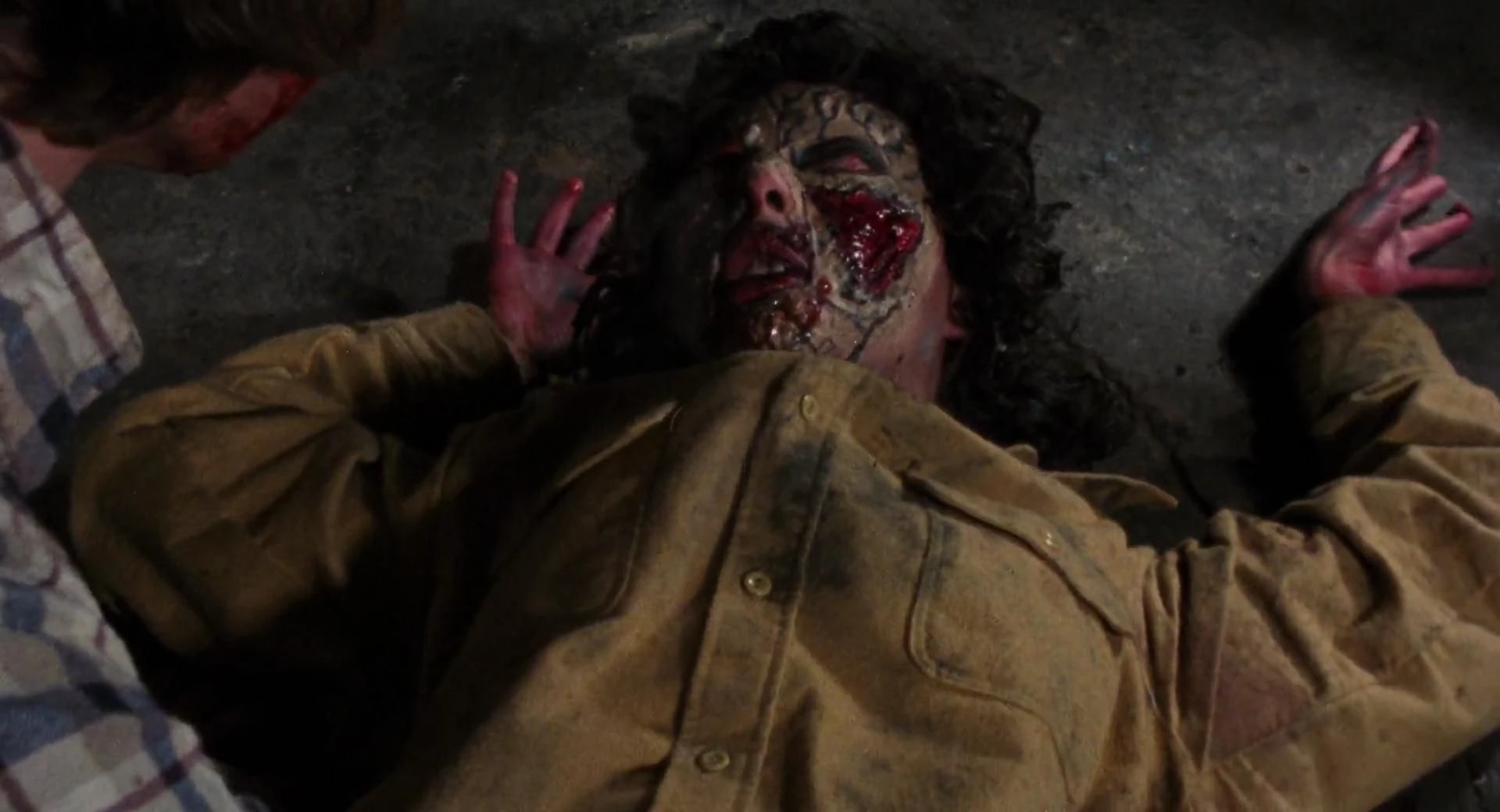 While Shelly plays hearts with Linda, Cheryl gets possessed by the Evil and attacks them. Shortly after, Shelly retreats back to her room where she is possessed when a demonic force breaks through her window and abducts her. After that, she attacks Scotty, scratching at his face, who retaliates by throwing her into the fireplace, severely burning her face. Deadite Shelly screams while on fire and Scotty pulls her out, only for her to resume attacking him, trying to force his head into the fireplace to return the burning, and then trying to stab him with the dagger from the cellar. Scotty pulls out his own hunting knife and slices through her hand, causing her to bite it completely off. He then stabs her in the back with the dagger, but she doesn't die. Scotty finally ends up dismembering her with an axe after first yelling at Ash to do it. After this, she is dead, and Scotty and Ash bury her remains and place a cross on her grave.