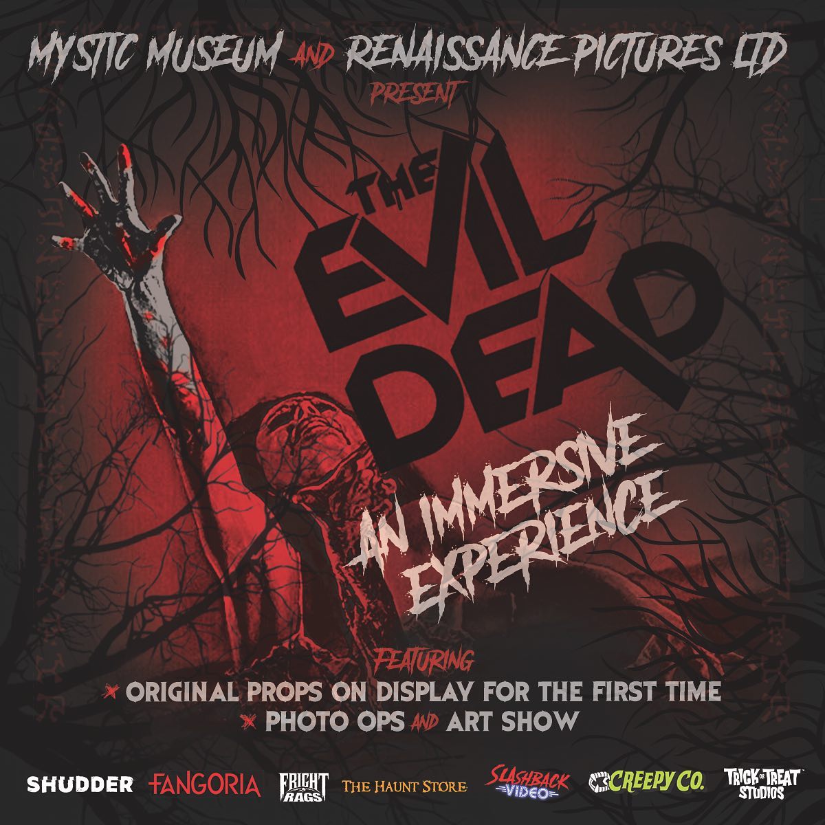 The Evil Dead: An Immersive Experience (sometimes advertised as The Evil Dead Exhibit) was a temporary exhibition held in the Bearded Lady’s Mystic Museum in Burbank, California from September 7th to December 7th, 2019. Created in collaboration with Renaissance Pictures, it was the largest showcase of screen-used props used in The Evil Dead, Evil Dead II, Army of Darkness, Evil Dead (2013), and Ash vs Evil Dead. The exhibit also showcased behind the scenes photographs from the original trilogy taken by cast and crew, and a small collection of fan-created art pieces.