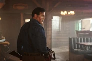 At the bar, Lem asks Ash if he can use Ash's employee discount at ValueStop to stock up on toilet paper and ammo, to which Ash responds that he left that job. Lem tells him that he needs the ammo for a militia group he's a part of, and offers Ash to stop by there some time and check out their "really cool toys". Realizing it might be a good idea to stock up on some weapons before going to the cabin, Ash accepts Lem's offer. Back at the table, Kelly asks Pablo what's wrong, seeing as how he's been acting weird around her since the ordeal at the Brujo's farm. Though she initially believes it to be related to the loss of El Brujo, Pablo admits that it has to do with when she was possessed by Eligos, when she tried to seduce him and kill him. Pablo flat-out asks if she really had any of those type of feelings towards her, or if it was all the demon. Before she can respond, Ash returns to the table to finish off his breakfast, just in time for the waitress to bring the check. After trying to convince the other two that they were all going to split the check, Ash says he'll pay for it, and tells Pablo and Kelly to wait in the trailer.