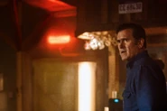 Back in the parking lot of The Western Moose, Ash approaches Amanda, saying that she could stick around for the police units that will be arriving any minute, or she could come with him, Kelly, and Pablo, and keep fighting evil. Amanda agrees, following Ash back to the Oldsmobile to join the others...