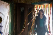 Smoke and haze blanket the farm of El Brujo as Ruby Knowby and Amanda Fisher arrive on the scene. Flames dance on the various totems and idols spread across the property, and a large funeral pyre right outside of the small ranch house still burns with the same intensity as it did when it was freshly lit. Ruby tells Amanda to check around the exterior of the home and garage, while she checks out the interior. As the two continue to examine the property inside and out, a loud bang captures the attention of Ruby and Amanda. Outside, Fisher turns her attention towards the sound, watching as a backfiring Oldsmobile hauling a silver trailer speeds off down the road in the distance.